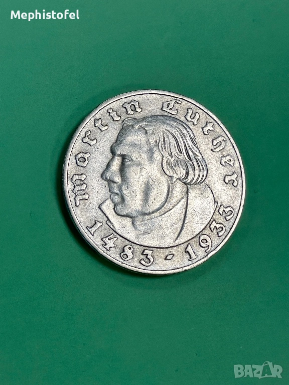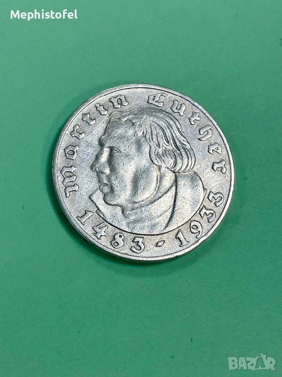2 марки /райхсмарки/ 1933 г, Германия - сребърна монета, рядка