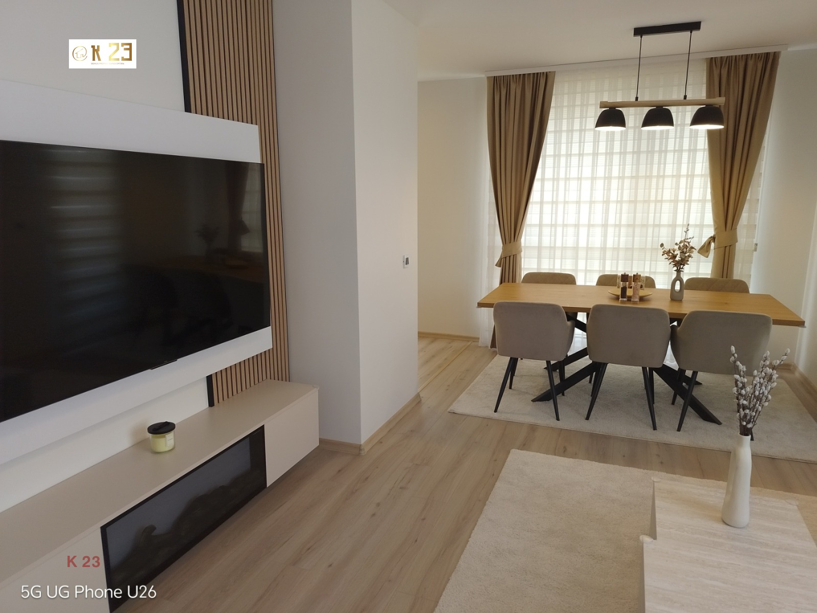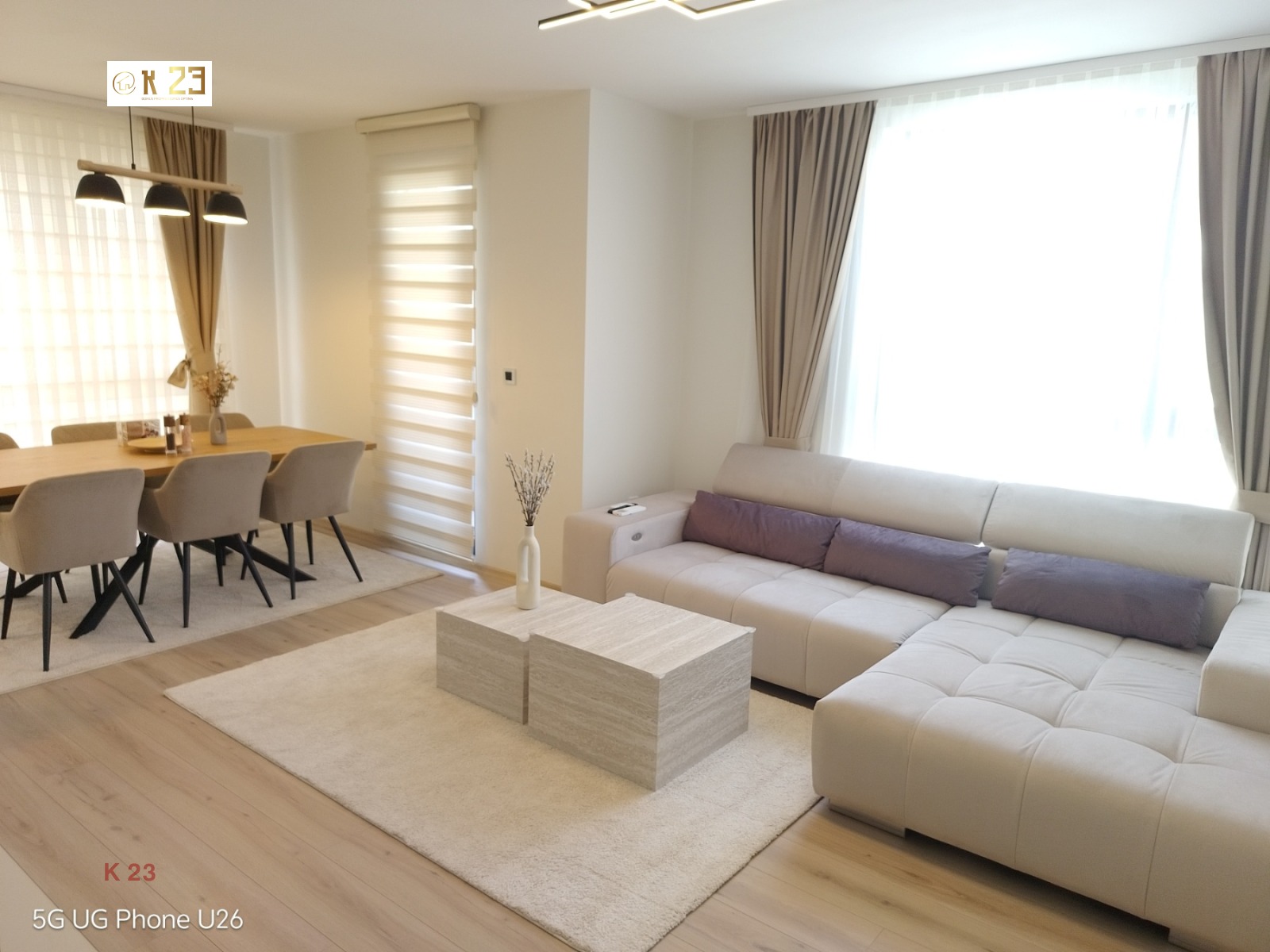Просторна и светла дневна зона с трапезария и кухненски бокс;