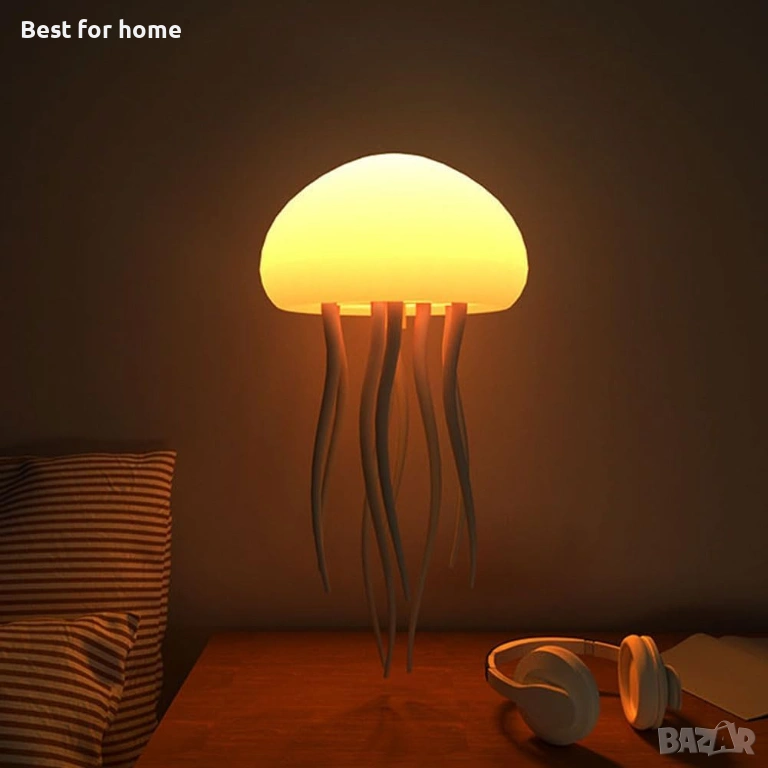 Лампа с медузи, LED светлина за настроение с медузи с 2 режима, гласово управление