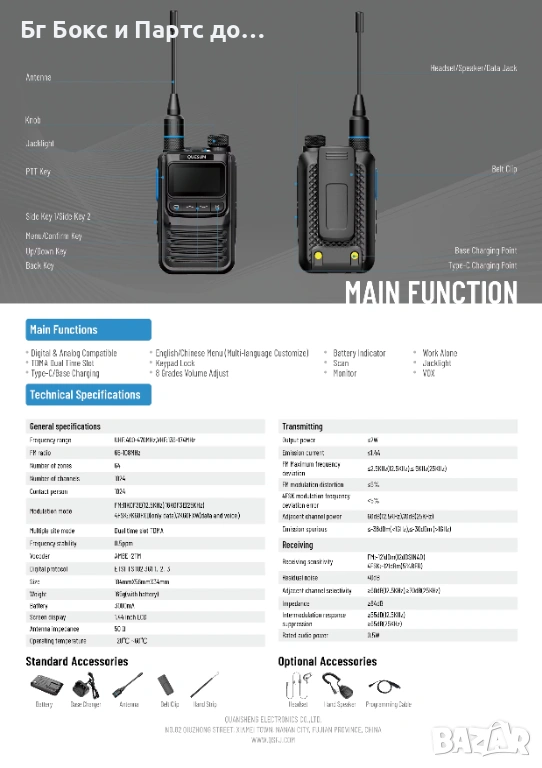 Радиостанция Quansheng M7 DMR Аналогово VOX