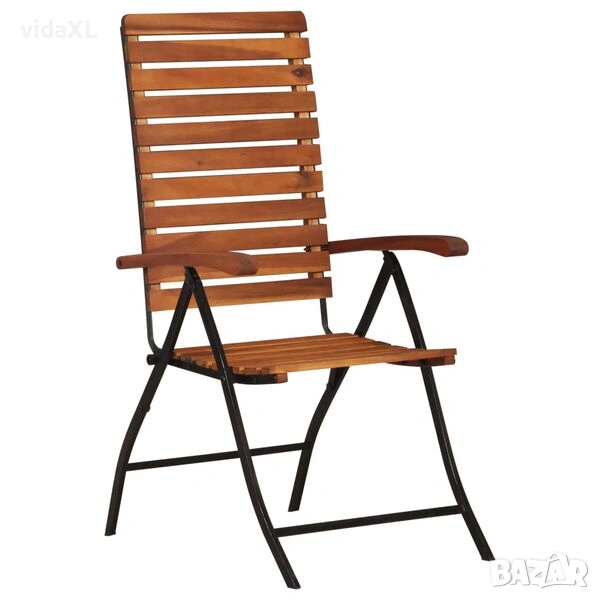 Трапезните столове са изработени от висококачествена акациева дървесина, която се характеризира с отлична устойчивост на атмосферни влияния и дълготрайност. Следователно столовете са подходящи както за закрито пространство, така и за употреба на открито. При това стабилната стоманена рамка добавя стабилност и здравината на столовете. Облегалките на столовете са регулируеми в 5 позиции на наклон, което ви позволява винаги да намерите най-приятната позиция. Благодарение на сгъваемия си дизайн, столовете лесно могат да се съхраняват, когато не се използват. Тези градински столове са и лесни за сглобяване.