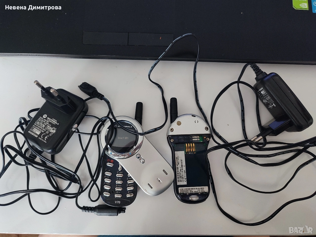 2 броя телефон Моторола V70, двата са работещи и с нови зарядни устройства.
