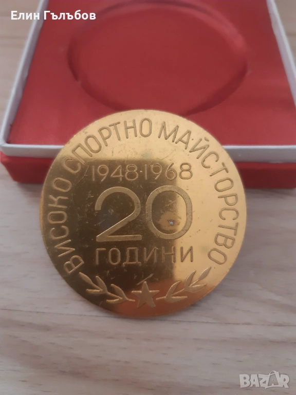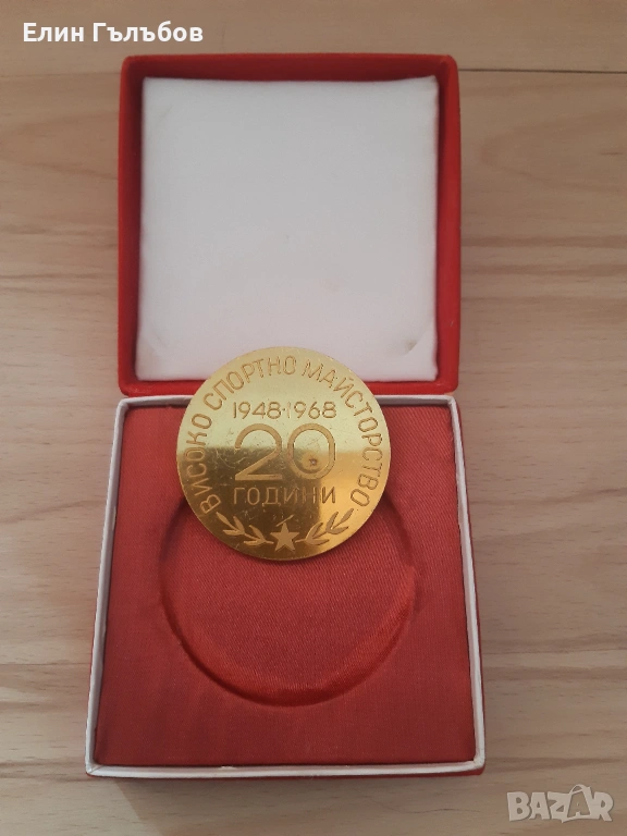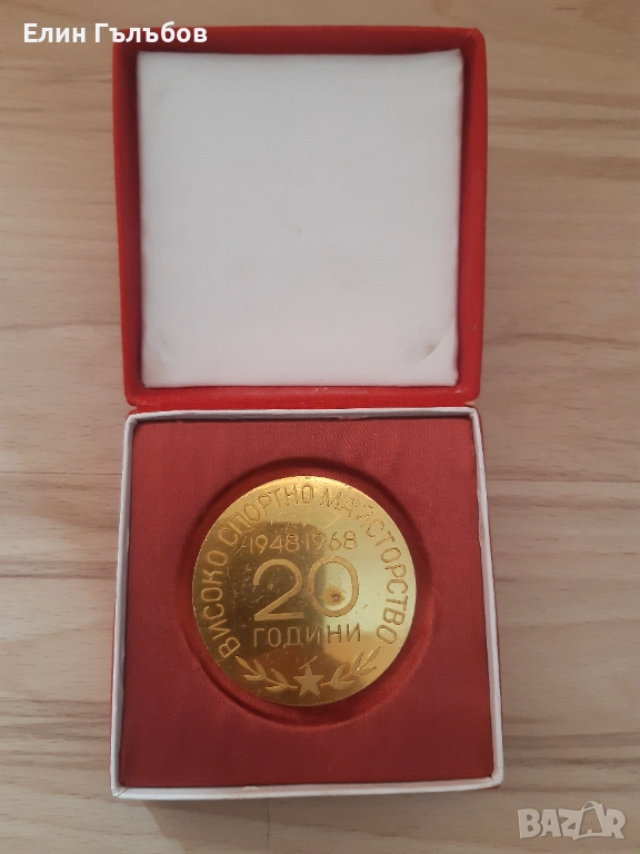 От задната страна на плакета освен юбилейните 20 години има надпис 1948 - 1968 Високо спортно майсторство .