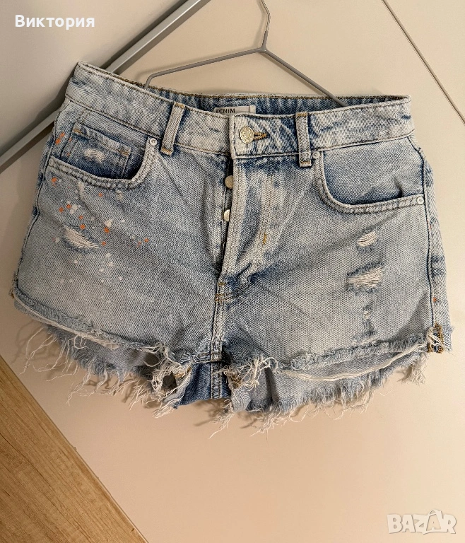 Къси дънкови панталони с напръскан ефект на марката Bershka в размер 36