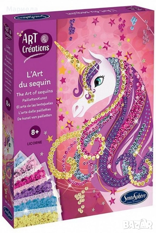 Творчески комплект с пайети "Еднорог", Sentosphere, 8+ години