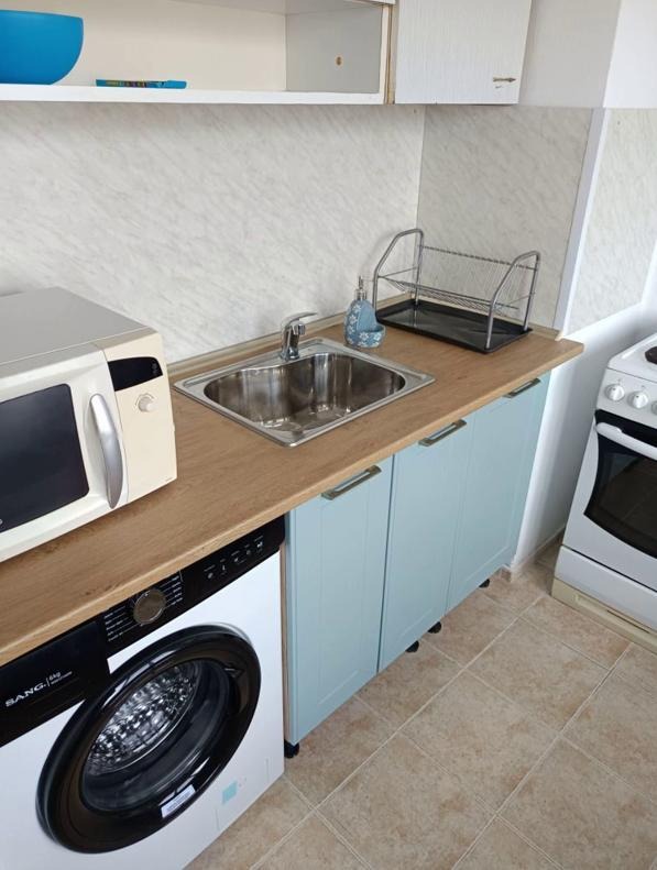 Разпределението включва просторен хол, отделна кухня и баня с тоалетна. Апартаментът е обзаведен и разполага с отопление на ТЕЦ.