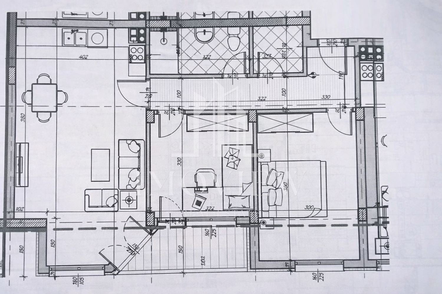 Имотът представлява: Входно антре, голяма дневна с кухненски бокс, просторни спални, балкон, килер и баня с тоалет.