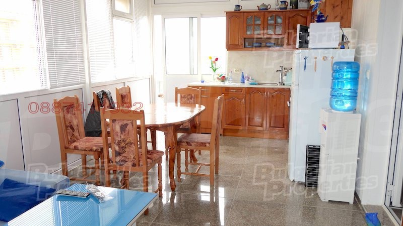 Жилището се намира на последен 5 етаж в сградата, обслужвана от тих асансьор и е с площ 200 кв.м., разпределена между 3 спални, 2 бани, дневен тракт, тераса, кухненски бокс и перално помещение. Всяка от стаите има достъп до двете големи тераси от които се открива прекрасна гледка. Напълно обзаведен и оборудван.
