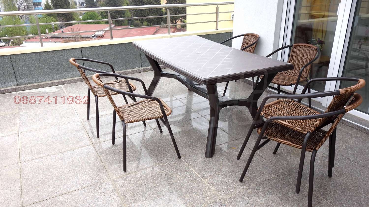 Тераса с шезлонги и чадъри