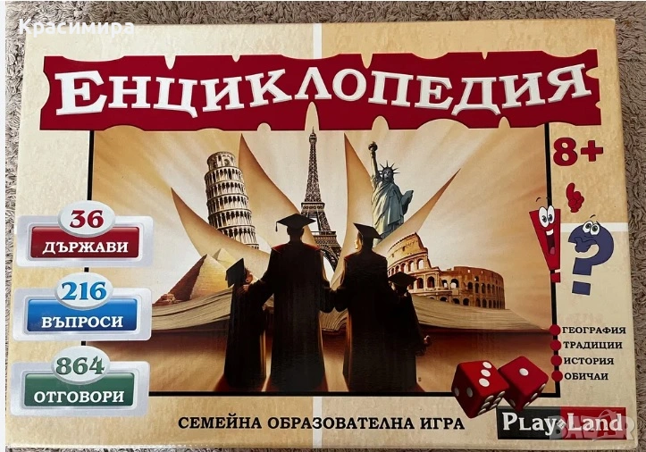 Образователна настолна игра, подходяща за деца над 8-години и възрастни. С нея детето ви ще научи нови неща, докато се забавлява с приятели или семейството.
