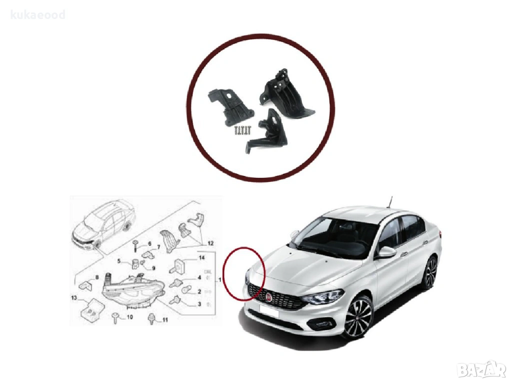 Комплект щипки за захващане на фар Fiat Tipo
