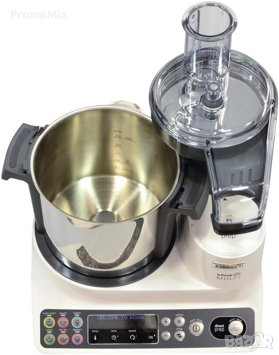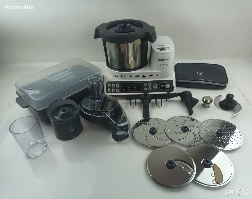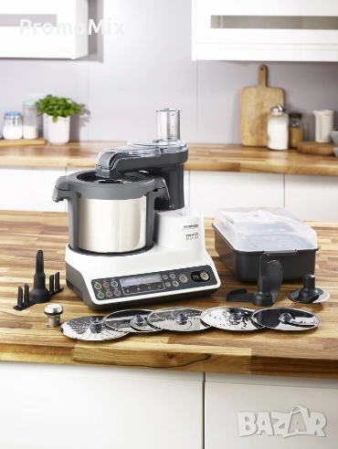 Уреда Kenwood KCook Muti CCL401WH е с мощност 1500 W, 6 функции на готвене, 12 скорости, 5 различни диска за настъргване и др.