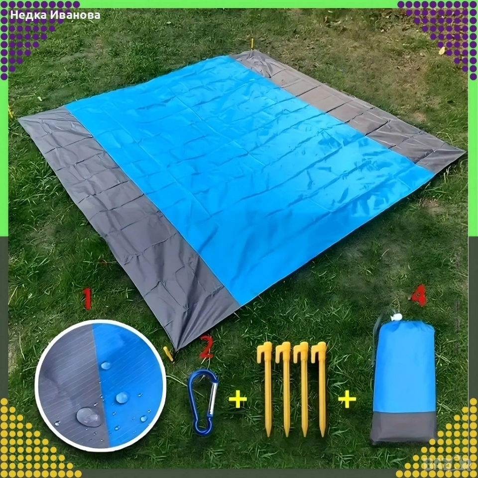 Голямо водоустойчиво плажно одеяло - Постелка за пикник подходяща за цялото семейство, 210 x 200 см, снимка 1 - Други стоки за дома - 54191348 Голямо водоустойчиво плажно одеяло - Постелка за пикник подходяща за цялото семейство, 210 x 200 см, снимка 2 - Други стоки за дома - 54191348 Голямо водоустойчиво плажно одеяло - Постелка за пикник подходяща за цялото семейство, 210 x 200 см, снимка 3 - Други стоки за дома - 54191348 1/3