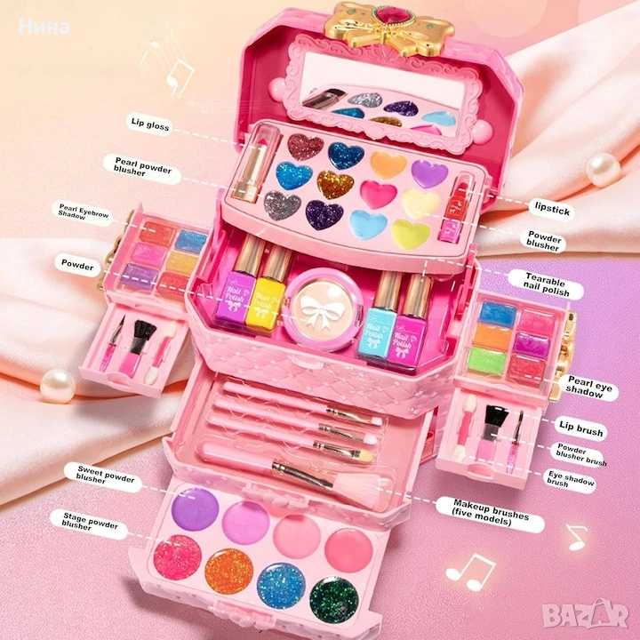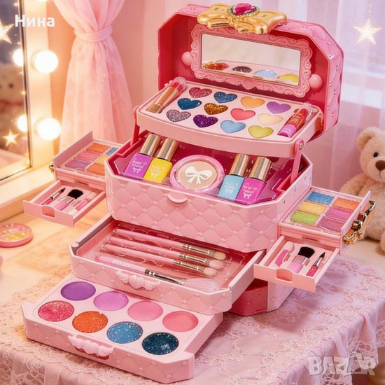 💄Детски комплект гримове, лакове истинска козметика с четки и апликатори.