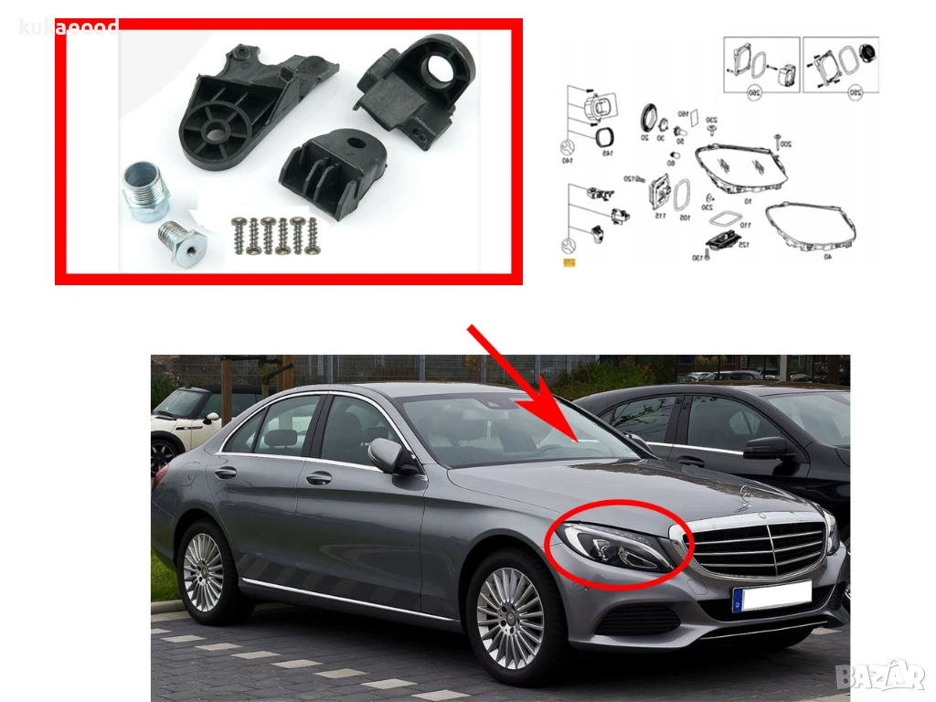 Комплект щипки за захващане на фар Mercedes C-Class W205 (2015-2020)