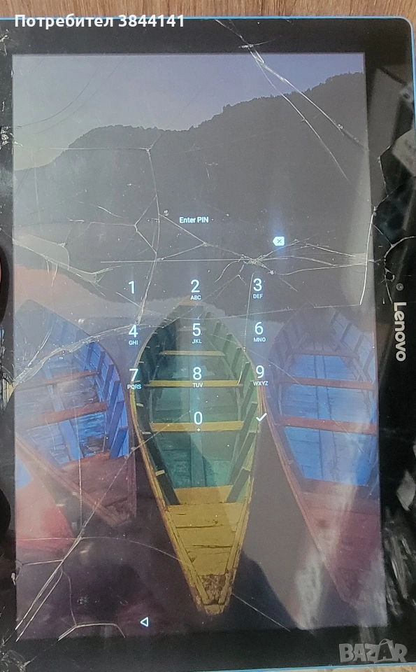 Другия таблет е заключен със счупен и частично работещ тъч и здрав дисплей - 10 евро.