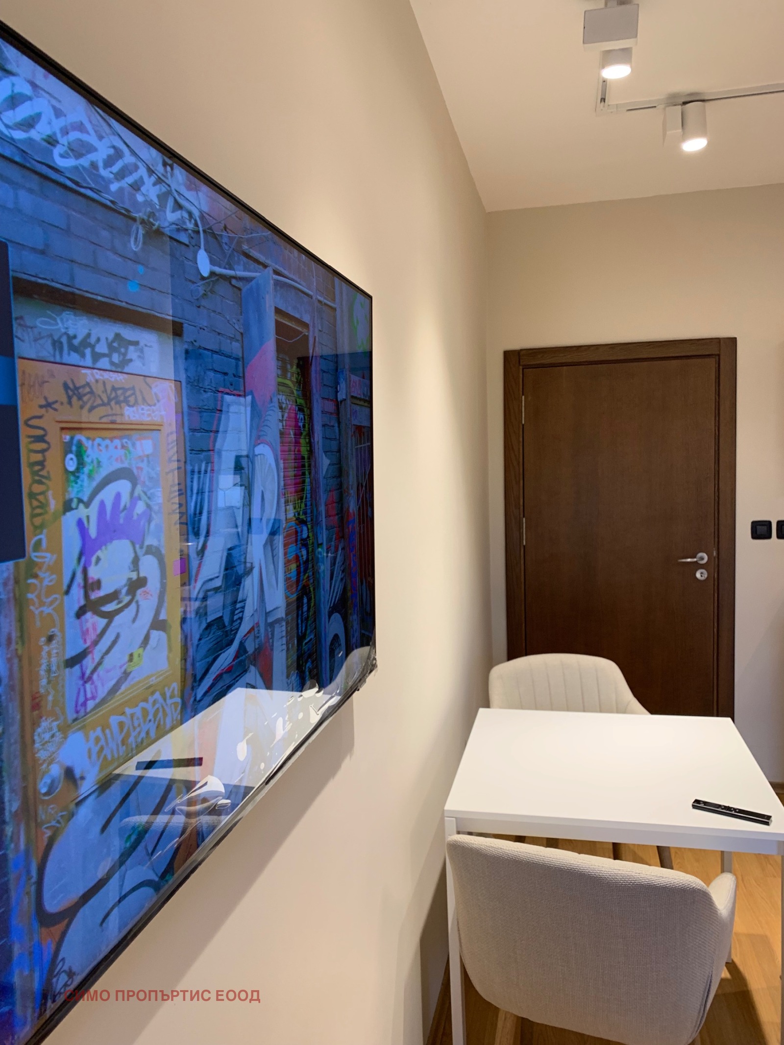 Студиото се състои от антре, много просторна баня с вана и тоалетна, хол-спално помещение в едно, кухненски бокс. Имотът е напълно обновен и реновиран С НАЙ-ВИСОК КЛАС ЕЛ. УРЕДИ И МОДЕРНИ ЛУКСОЗНИ МЕБЕЛИ!