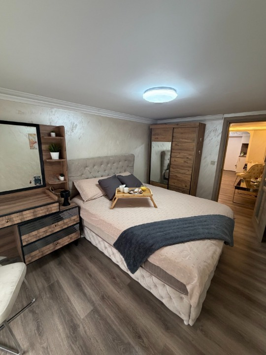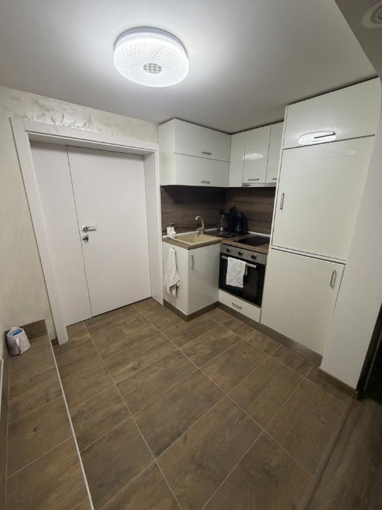 Напълно обзаведен двустаен апартамент на бул. Княз Ал. Дондуков, в близост до ул. Г. Бенковски. Първи етаж над магазини. Южно изложение. Разпределение: дневна зона с напълно оборудван кухненски бокс, спалня, баня с тоалетна и душ кабина. Отоплението е на ток.