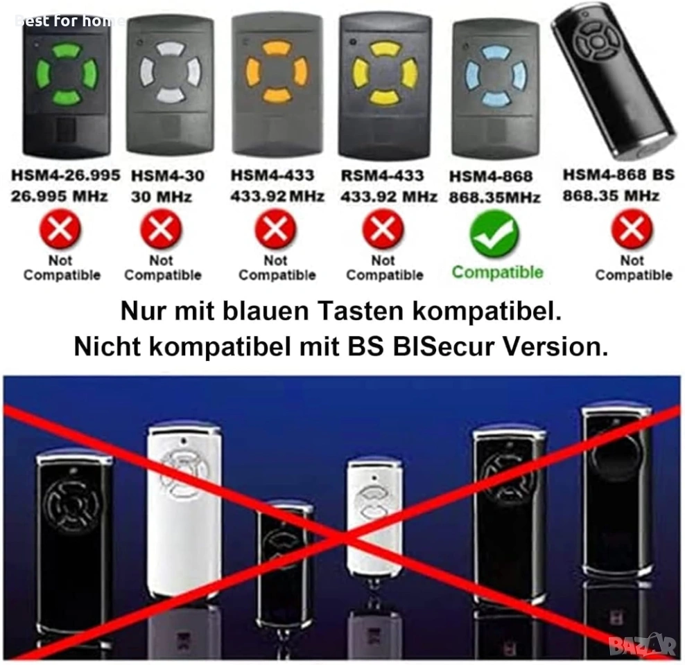 Комплект от 2 дистанционни управления за гаражна врата за Hörmann HSM4-868, 2 бр
