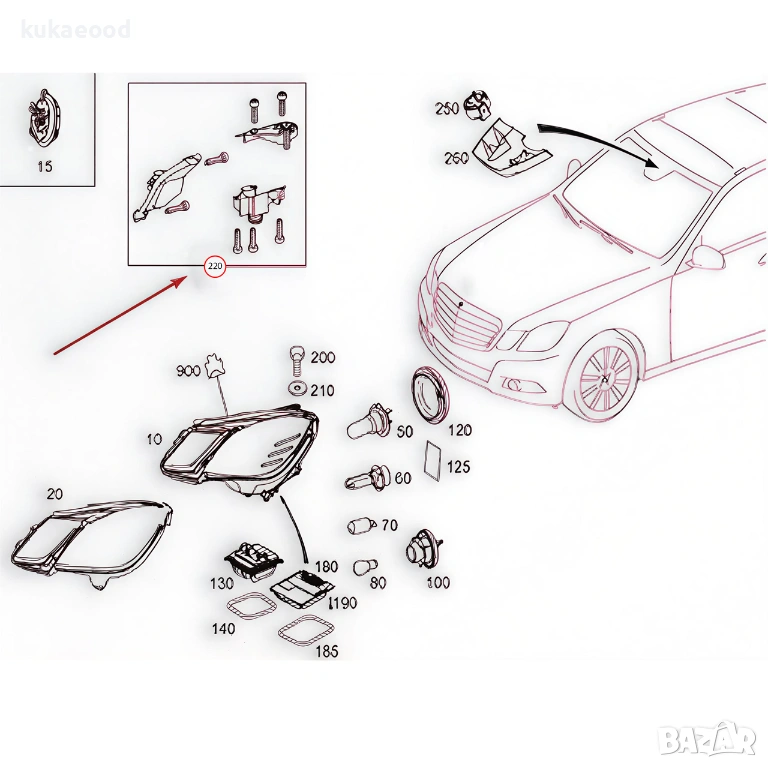 Комплект щипки за захващане на фар Mercedes E-Class W212 Pre-Face (2009-2013) за десен фар