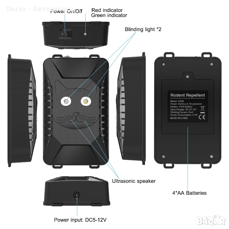 Ултразвуково устройство против гризачи със сензор за вибрации е ефективно решение за защита на автомобил, гараж или дом от нежелани вредители. Работи без химикали, използвайки ултразвукова технология и светлинни стробоскопи, които отблъскват гризачи и насекоми.
