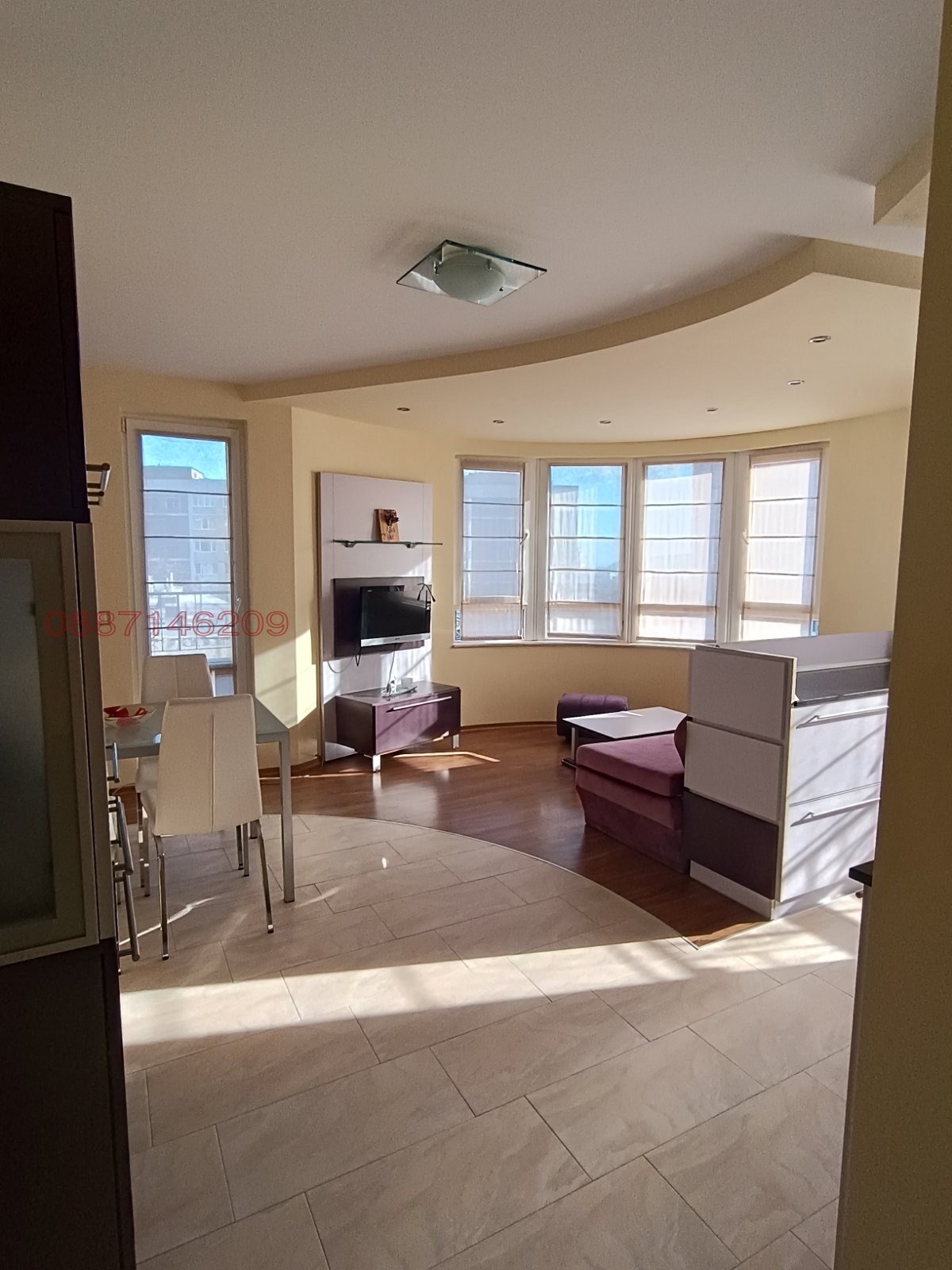 Дневна с кухня, с техника от висок клас - вграден хладилник, съдомиялна, пералня и други помощни уреди; спалня; баня; 2 тераси и панорама.