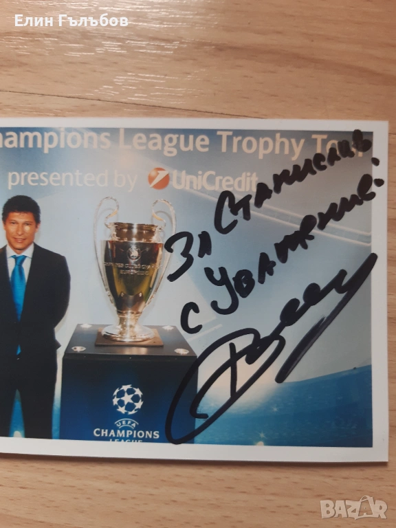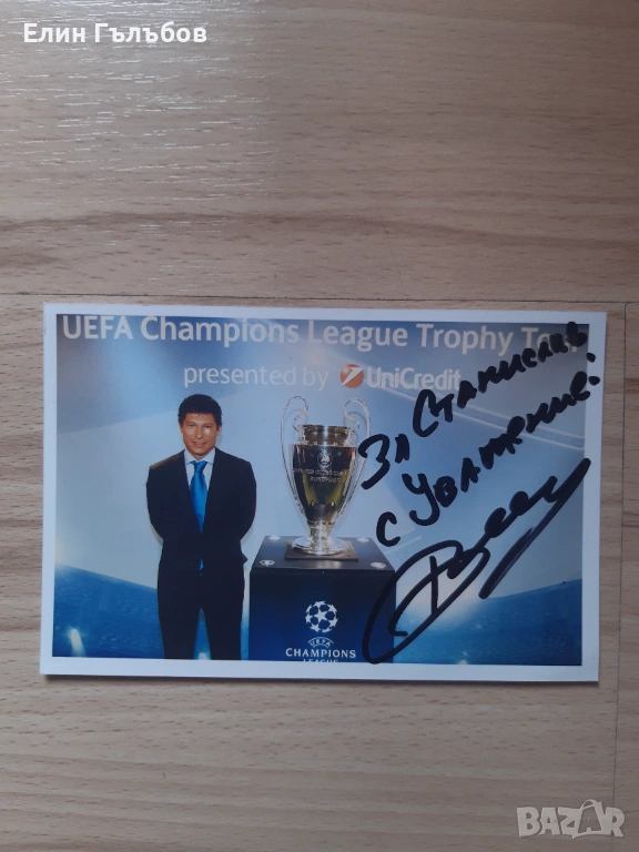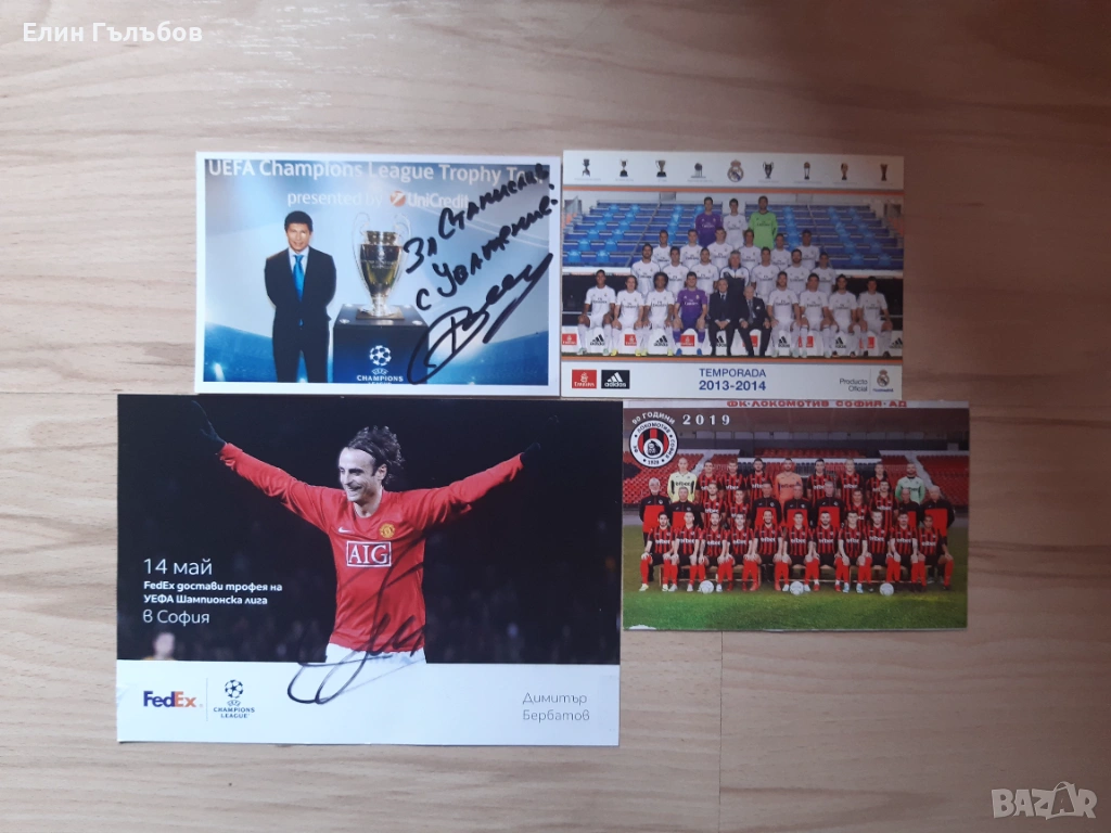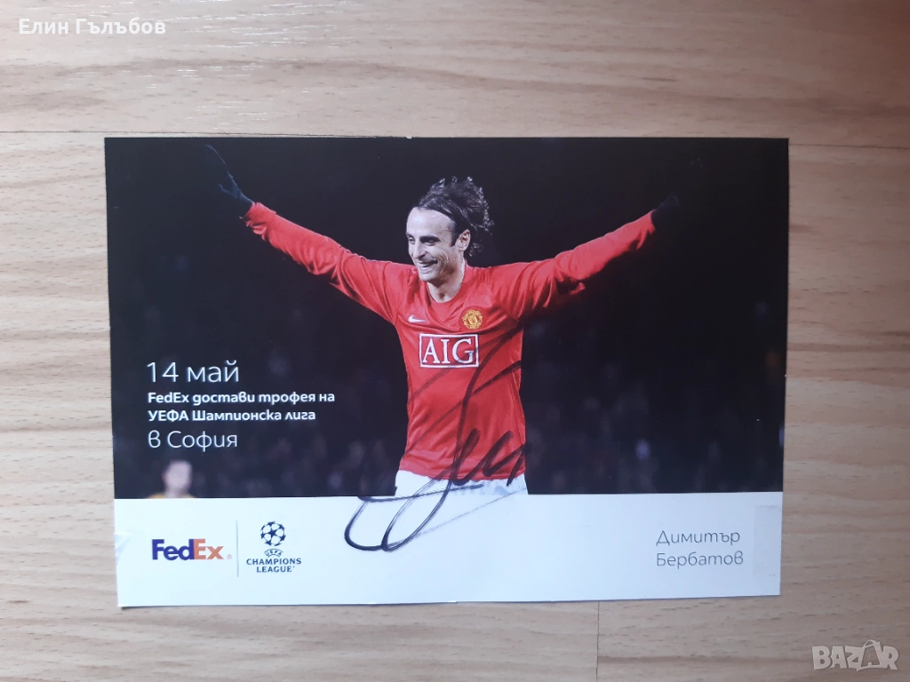 - 3. Картичка на Димитър Бербатов с личен негов автограф върху снимката . Снимката е от визитата и представянето на трофея УЕФА Шампионска лига в София на 14. Май .