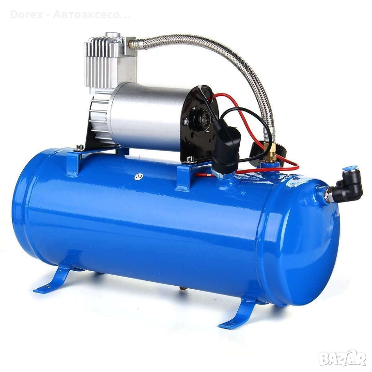 Компресорът за въздух под налягане 12V 150PSI (8 Bar) с 6-литров резервоар е практично и мощно решение за различни нужди - от помпене на гуми до работа с въздушни инструменти. Подходящ е за автомобили, велосипеди, лодки и други приложения.