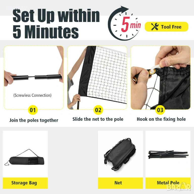 Превърнете двора или парка в професионално игрище за минути! Тази преносима мрежа е идеална за всеки, който обича активния отдих и качественото време със семейството и приятелите.