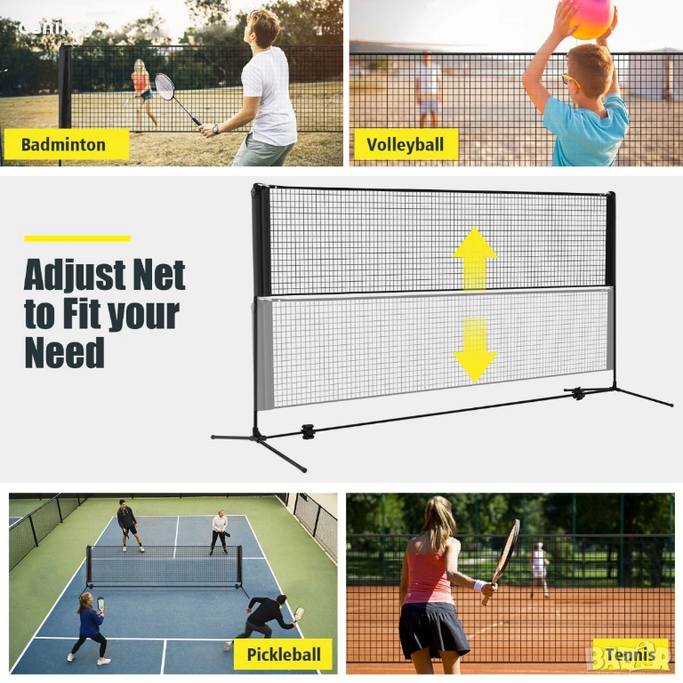 ✅ Универсална: Регулируема височина (от 82 до 155 см). Перфектна за бадминтон, тенис, волейбол или пикълбол.