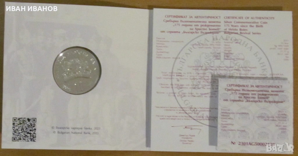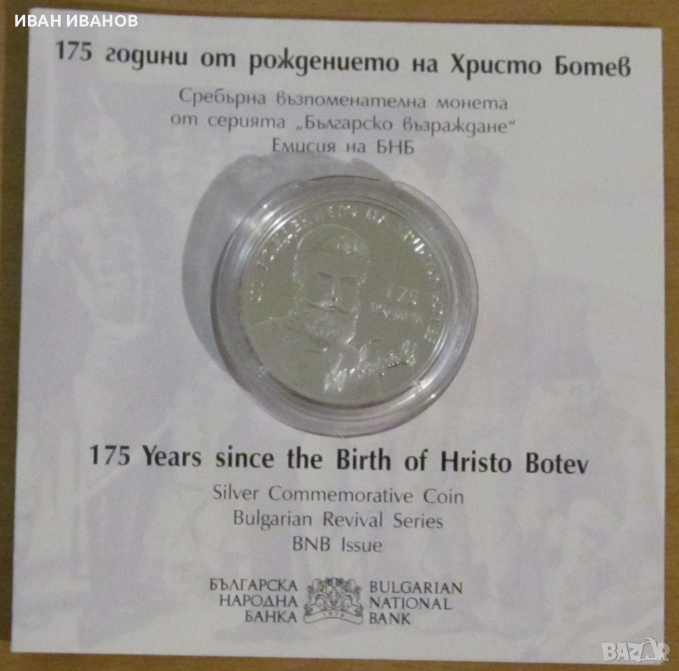 Сребърна юбилейна монета - "175 години от рождението на Христо Ботев"