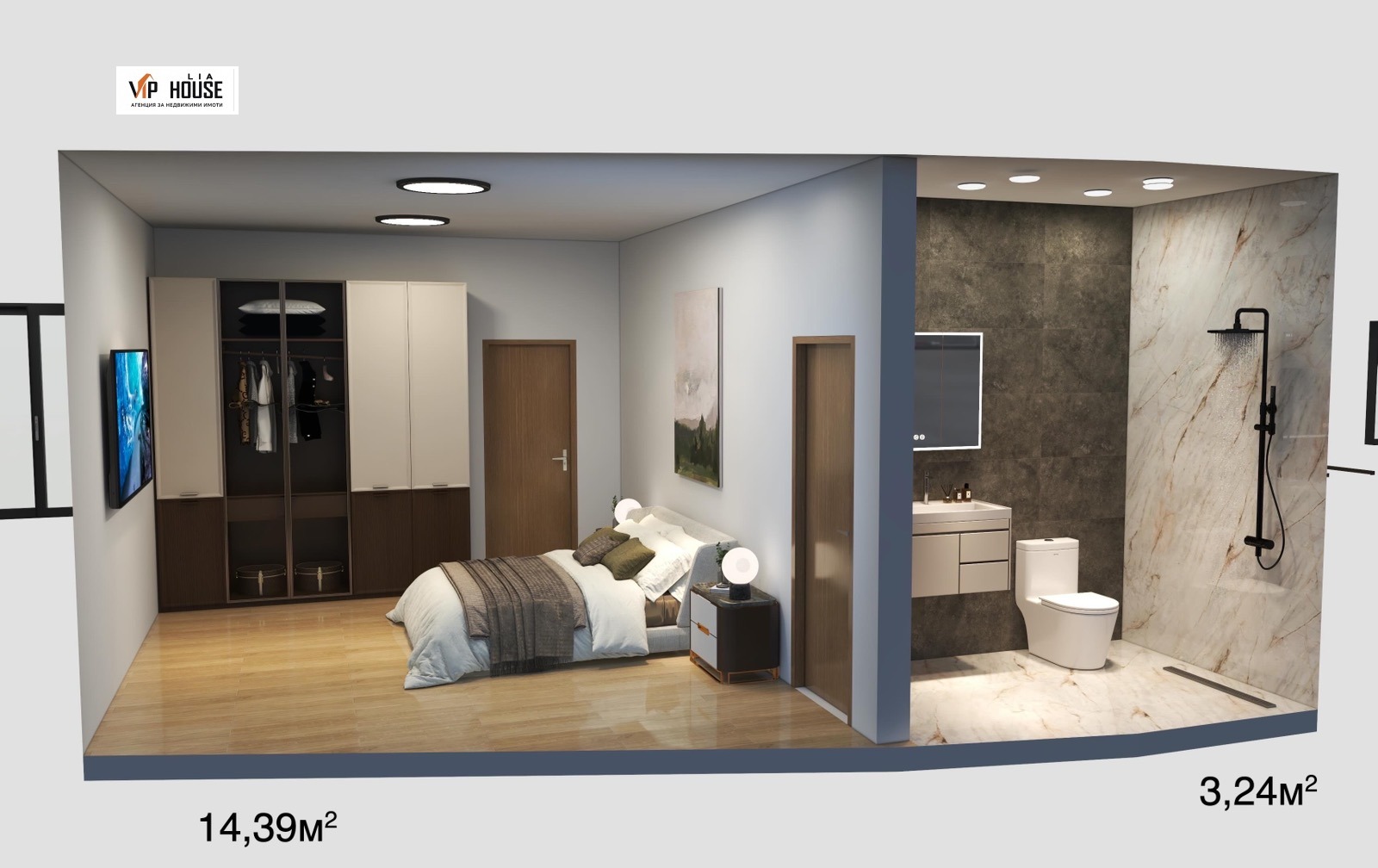 Спалня с Баня 13,1 кв.м. + 3,2 кв.м.