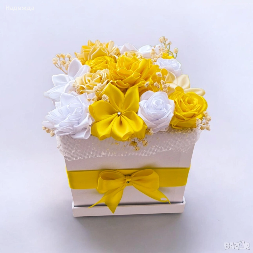 Сатенени цветя в кутия , снимка 1 - Декорация за дома - 54192784 Сатенени цветя в кутия , снимка 2 - Декорация за дома - 54192784 1/2