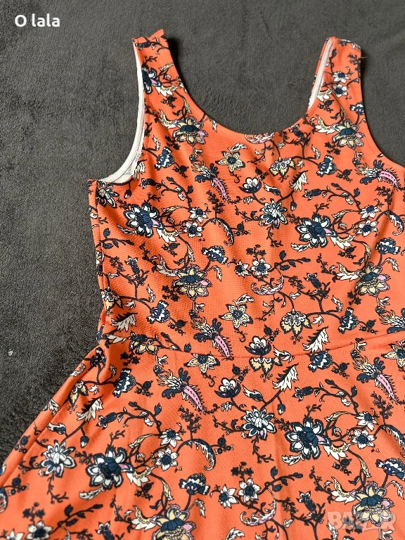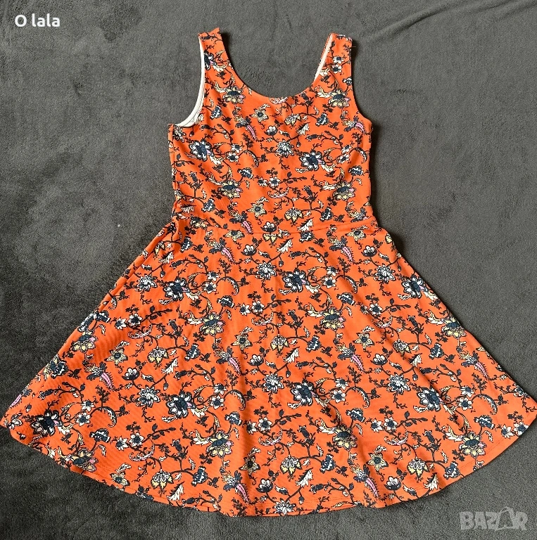 Предлагам лятна рокличка в оранжев цвят и цветчета по нея. Роклята е слагана веднъж и няма следи от употреба.