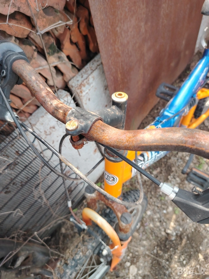 Велосипеда се нуждае от малко профилактика иначе е запазен,здрава седалка кормилото и вилката имат нужда от малко спрей,повече инфо на посочения телефон