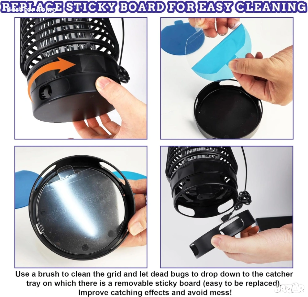 БЕЗПЛАТНА ПОДДРЪЖКА: Предлага се с 5 лепящи подложки за еднократна употреба. Просто сменяйте лепящите подложки всяка седмица и изчетквайте отпадъците от решетката (комплектът за почистване е включен). Без мръсотия.