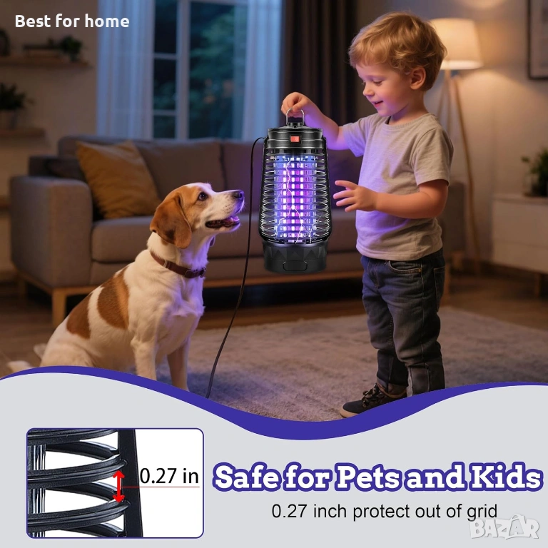 МОМЕНТАЛНО ПРЕМАХВАНЕ НА НАСЕКОВЕ: Мощната UV светлина с дължина на вълната 365 nm привлича комари, молци, мухи и комарници, докато високоволтовата мрежа от 2500 V осигурява незабавно елиминиране. Разтворът без химикали намалява летящите вредители с над 90% в рамките на 24 часа.