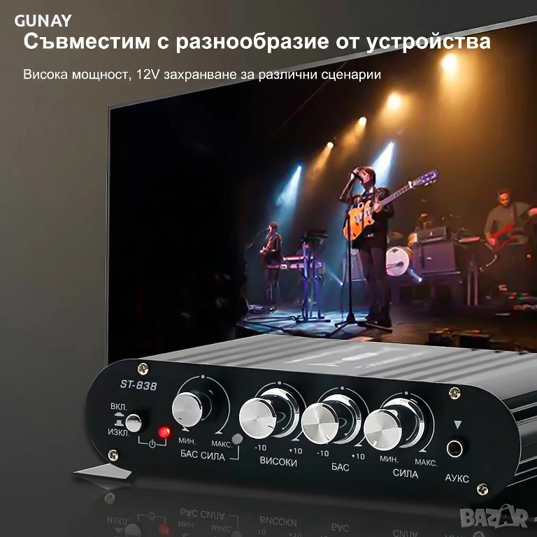 усилвател за кола, домашен усилвател, мини усилвател, аудио усилвател, 2.1 усилвател, усилвател за субуфер, авто усилвател, ST-838, усилвател 12V, HiFi усилвател, стерео усилвател, аудио система за кола, Lepy, Lepai, Lepy LP-838, AK170, AK270, AK380, TPA3116, Fosi Audio, Aiyima, Nobsound, Douk Audio, Pioneer, Sony, Alpine, Kenwood, JVC, JBL, Hertz, Kicker, Rockford Fosgate, Ground Zero, Blaupunkt, Nakamichi, бас каса, авто говорители, колони за кола, аудио плеър за кола, музика за кемпер, усилвател за лодка