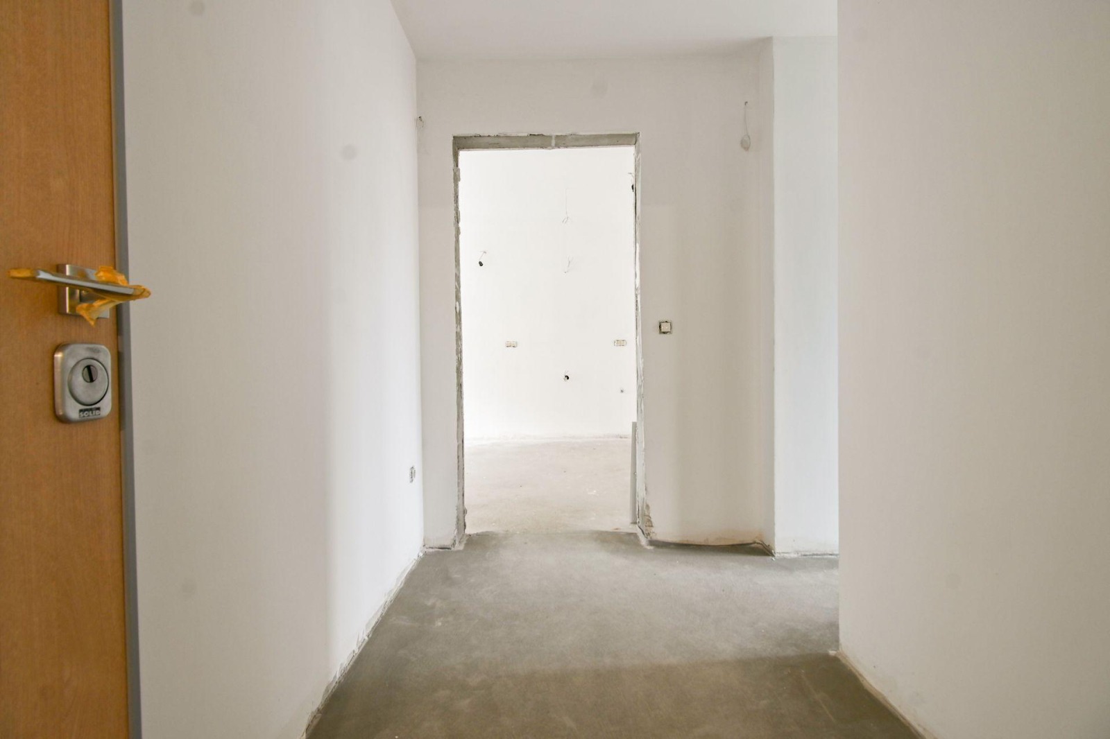 🔷 Разпределение: Входно антре, хол с кухненски бокс, две спални, два санитарни възела.