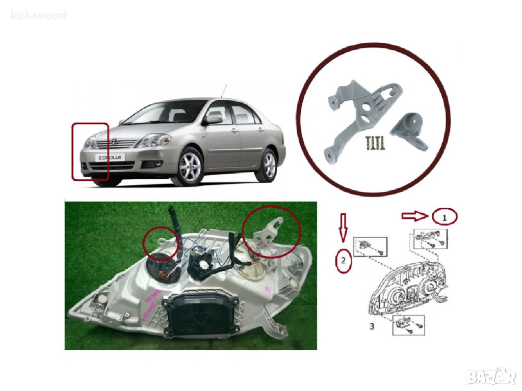 Комплект щипки за захващане на фар Toyota Corolla E120/E130 (2002-2008)
