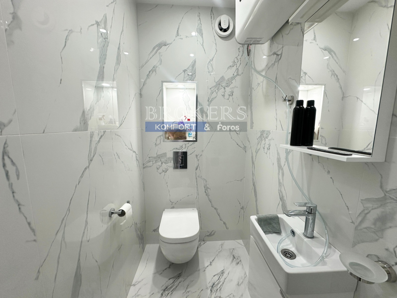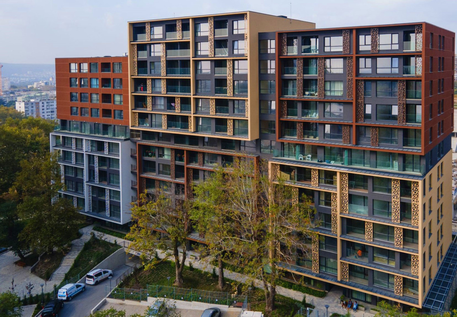 Сградата е ново тухлено строителство, тип затворен комплекс, с асансьори. озеленен профеионално поддържан двор, контролиран достъп и отлично поддържани общи части.