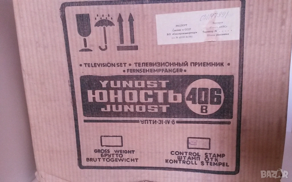 Ретро телевизор Юность Yunost Junost 406 B без кабел за захранвае в кутия с упътване и фактура