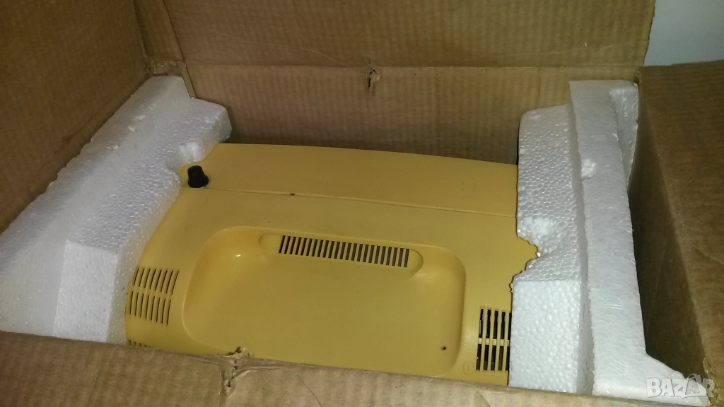 С оригиналната кутия и стиропори е. Има следо от времето и по кутията, и по стиропорите, но като цяло са в добро състояние.