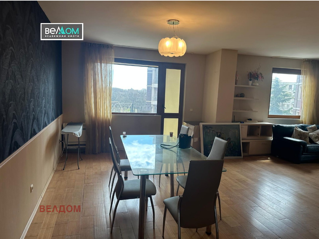 Жилището е със статут на жилище, апартамент , съгласно Нотариалния Акт. Разположено е на 4-ти етаж от 6 с асансьор и много добре поддържани общи части. Със застроена площ 117,92 м2, общи части 17,06 м2 или общо 139,98 м2. Състои се от голям дневен тракт с площ не по-малка от 75 м2 с кухненски кът, 2 спални, входно антре, коридор, баня/тоалетна, килер със затапени вода и канал-възможност за изграждане на втори санитарен възел и 3 балкона, гледащи на югоизток, юг и запад. Жилището е огряно от слънце и светлина в различните стаи през целия ден. В подблоковото пространство е изграден подземен паркинг с асансьорен достъп- удобен, с голяма маневрена площ. Гарантиран контрол на достъпа.