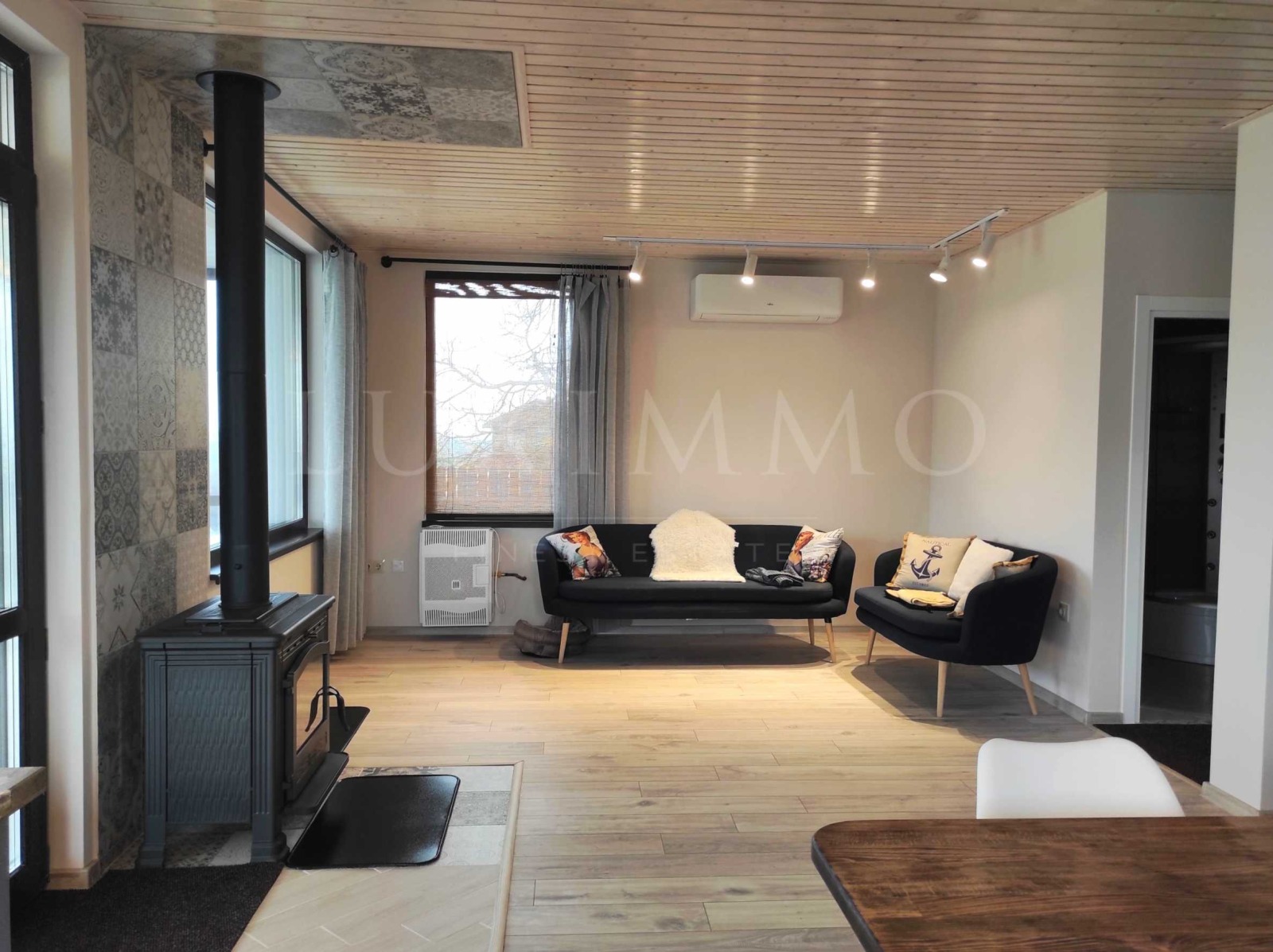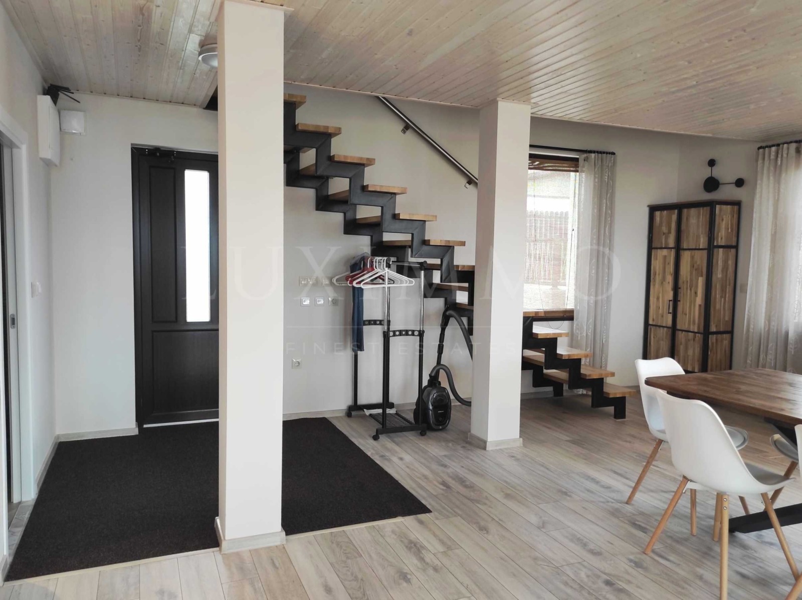 Вилата е строена е през 2023 г., откроява се с атрактивна фасада с панорамни прозорци. Продава се с мебели и техника, като всичко в къщата е чисто ново, в гаранция.