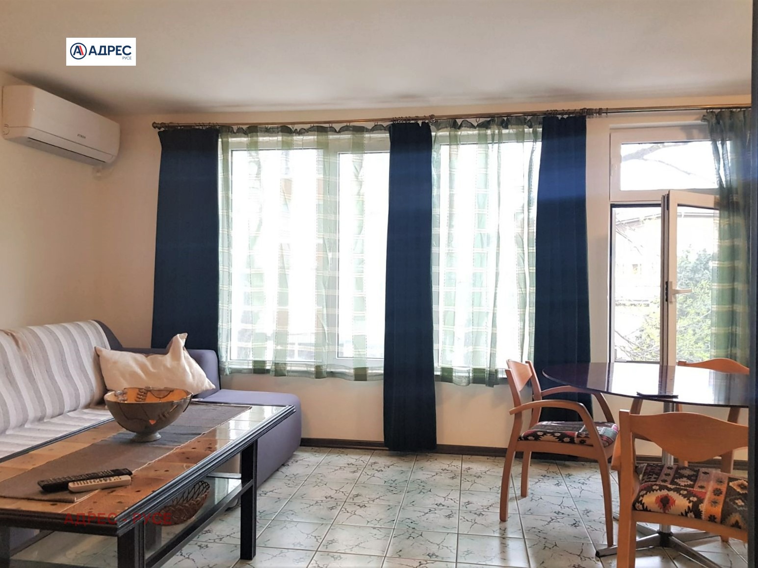 Предлагаме Ви двустаен апартамент под наем, в района на ОД на МВР- Русе, представляващ просторен дневен тракт с обособена кухненска част, с излаз на остъклена тераса, спалня, баня и тоалетна отделно, коридор с дълбоки шкафове. Апартаментът е след освежителен ремонт, в отлично състояние. Отдава се напълно обзаведен и оборудван- съдомиялна машина, готварска печка, грил, абсорбатор, пералня, хладилник, телевизори. В дневния тракт има монтиран инверторен климатик. Не се допускат домашни любимци. Апартаментът се предлага само за непушачи. Сградата е с добре поддържани общи части, контрол на достъп, без асансьор. Възможност за наемане на гараж на допълнителна цена от 70 евро. В района има свободен достъп за паркиране по всяко време. За повече информация и осъществяване на огледи: 0896300129 Ирена Божанова.