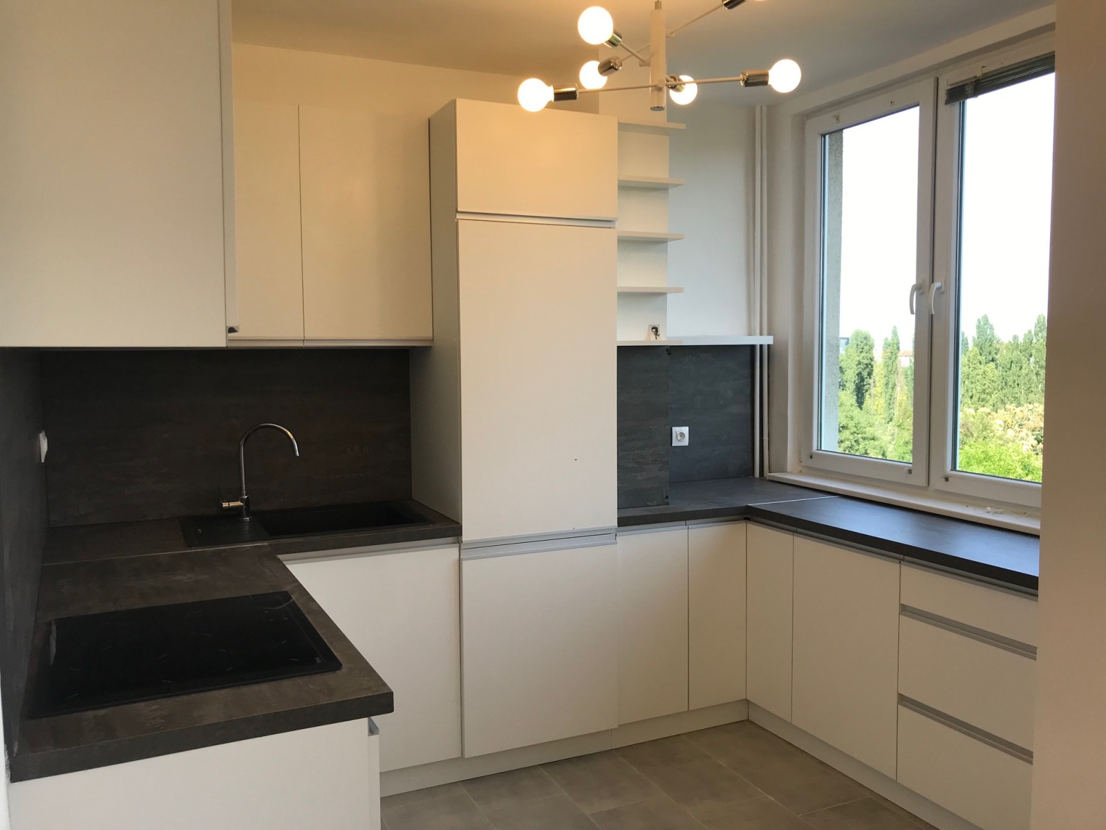 Кухня- модерна поръчкова с нови електроуреди- хладилник с фризерна част, печка с керамични котлони, абсорбатор, съдомияна машина.