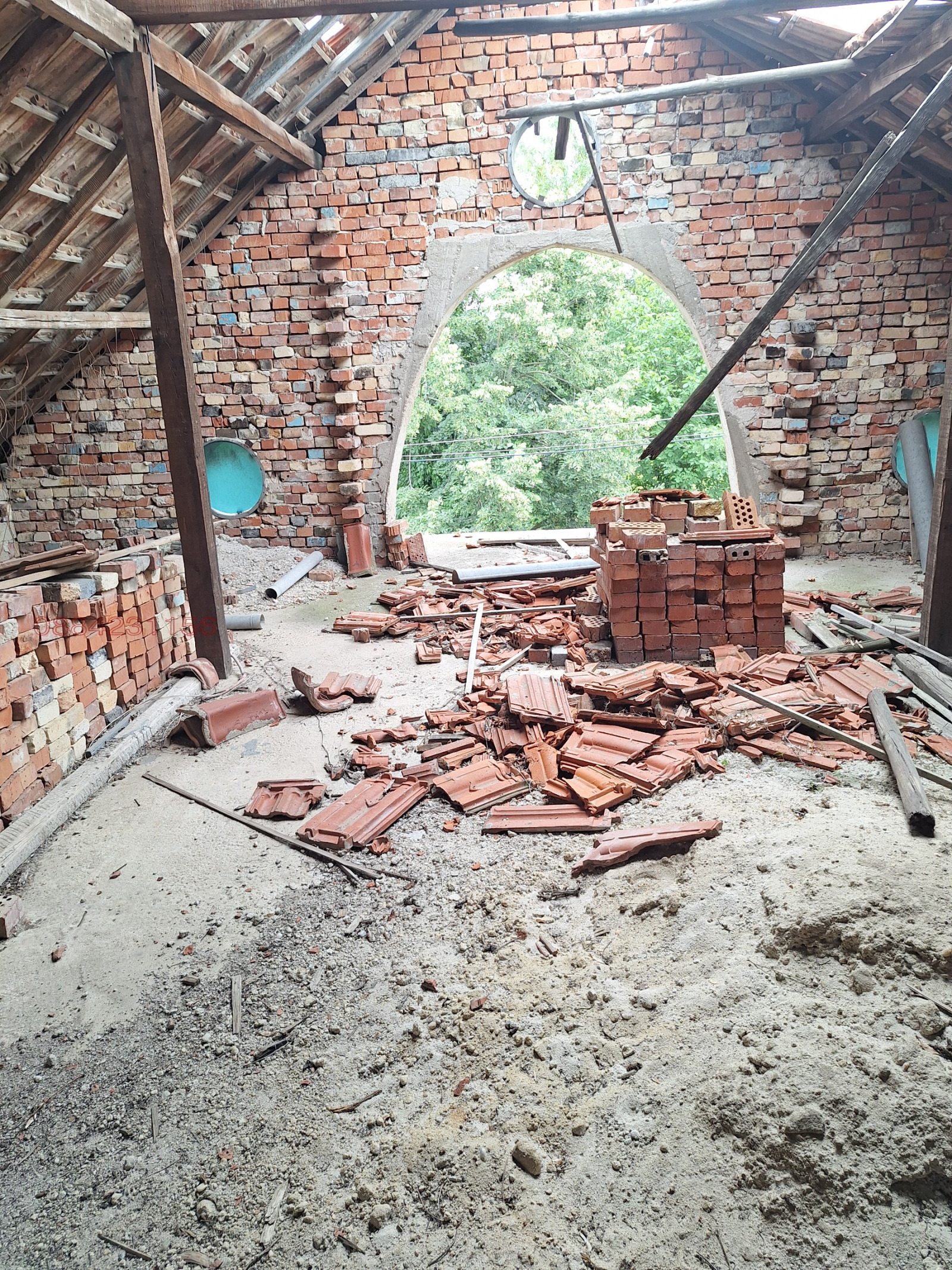 Покривната конструкция е дървена - с керемиди. Покрива се нуждае от основен ремонт.
