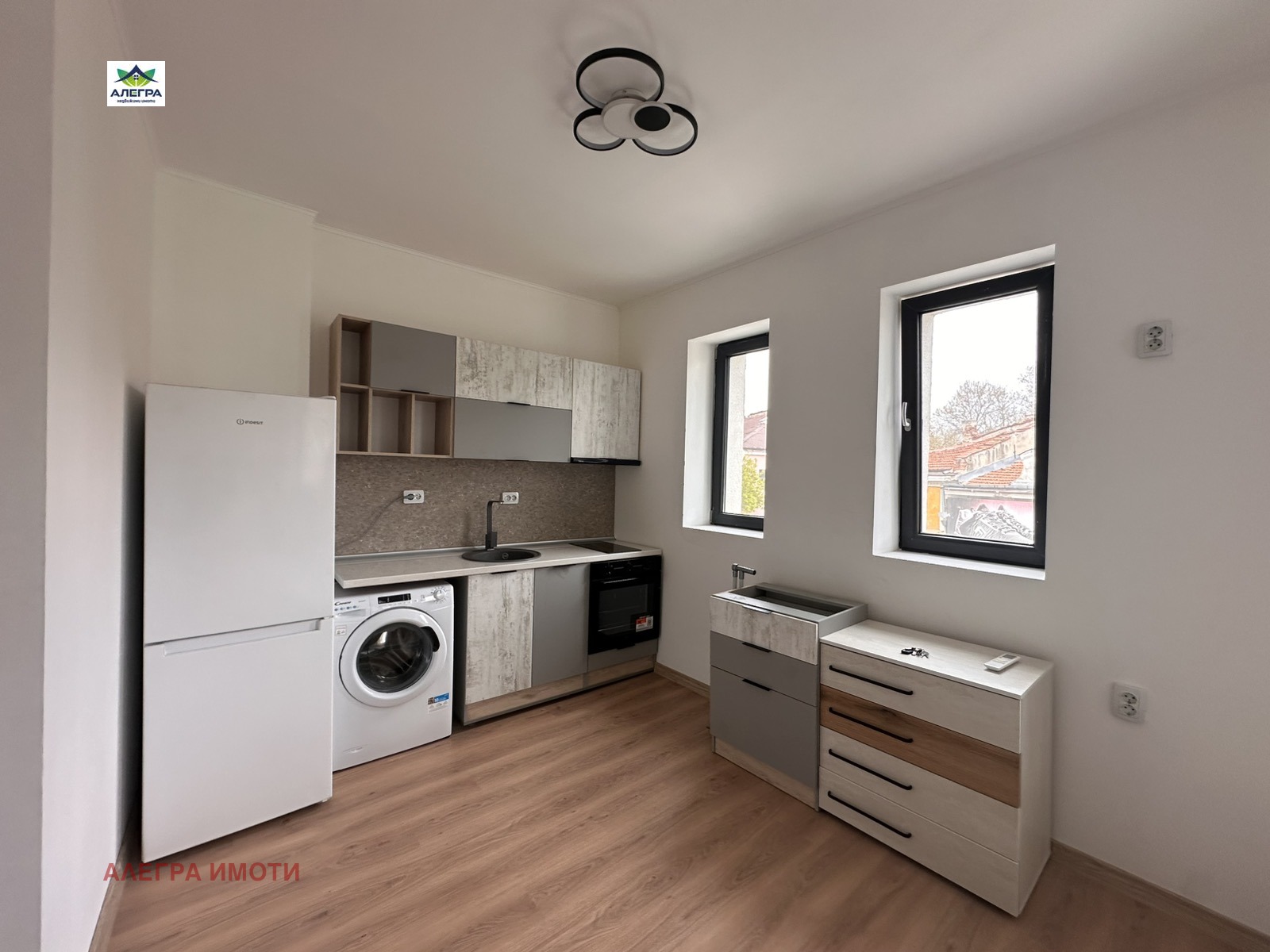 Алегра Имоти отдава под наем ново студио в супер центъра на Пазарджик. Площта му е 30 кв.м. и се състои от всекидневна с кухненски бокс с всички необходими електроуреди и спалня в едно, баня и тоалетна. Апартаментът е разположен на втори етаж без асансьор.