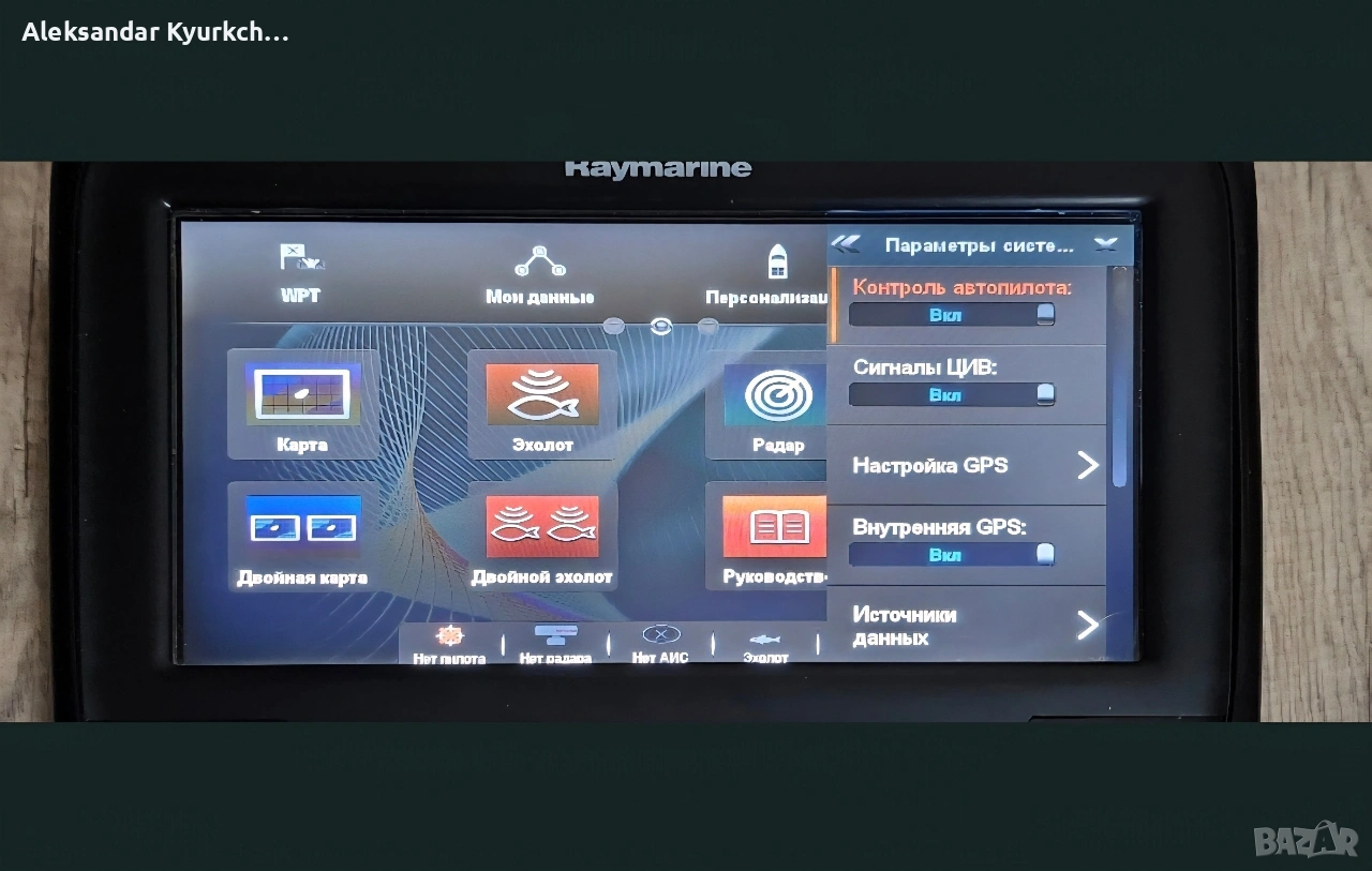 Без кабели!!! проверено видно от снимките!!! стойка няма За повече въпроси на телефон или пишете тук Без окислявания на конектори Изпращане по еконт или взимане от място Raymarine E70234 представлява използван продукт, който може да бъде отлично добавление към вашата навигационна система. Използван е. Подходящ за любители на морския спорт и професионални морски капитани. Тази обява е за дисплея това което виждате. Кабелите НЕ са включени. Моля, обърнете внимание: Това е така нареченият многофункционален дисплей или МФД. МФД изискват периферни устройства, за да изпълняват определени функции (напр. радарна антена за радар, преобразуватRaymarine a98 9″ сензорен MFD картограф SONAR w/ WiFi + DownVision E70234ел за сонар и др.). Тези периферни устройства не са включени, но са лесно достъпни в eBay. A98 комбинира всички навигационни възможности на a95 с вграден двуканален CHIRP сонар с висока резолюция. CHIRP DownVision предоставя фотографска гледка на света под лодката. - Може да се монтира скрито или на цевта (монтировката на цевта не е включена). Вграденият Wi-Fi позволява данни и дистанционно управление със смартфон или таблет. Характеристики - 50-канален вграден GPS.